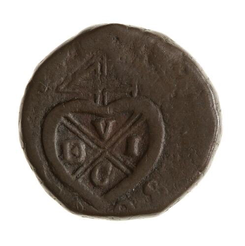 In the 1790's copper coinage needs for Bombay were supplied from England. By 1802 these coins were becoming scarce and it was decided to copy their design but strike them locally and at reduced weights (as they would make a loss retaining the earlier standard). Authority was granted and production began almost immediately in 1802 and continued as required until 1829; although there was a further English production of copper denominations in 1804 as production of the local coins was "slow, laborious and expensive" (Pridmore p.132).