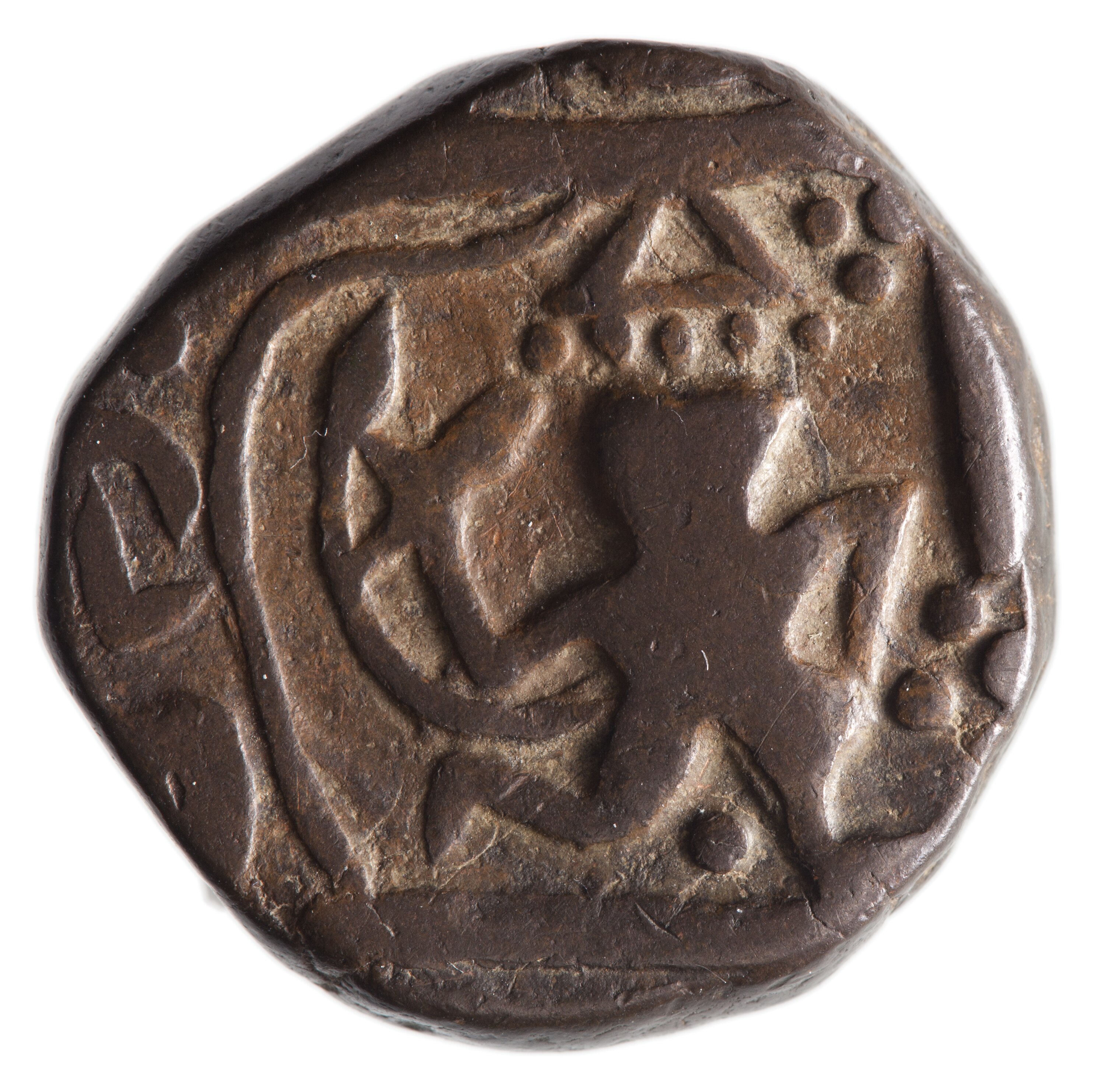 The reverse has a double pennant and a legend in Persian script (mostly off flan)