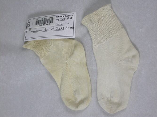 Pair of cream-coloured socks. Used and owned by Bill Boyd in the 1950s.