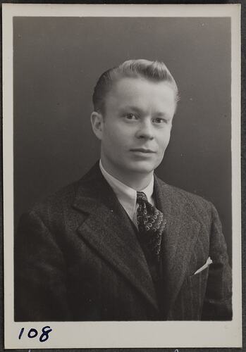 This is one of many portraits in an album of military and naval personnel who visited the Kodak Australasia Pty Ltd factory during World War II, 1939-1945.