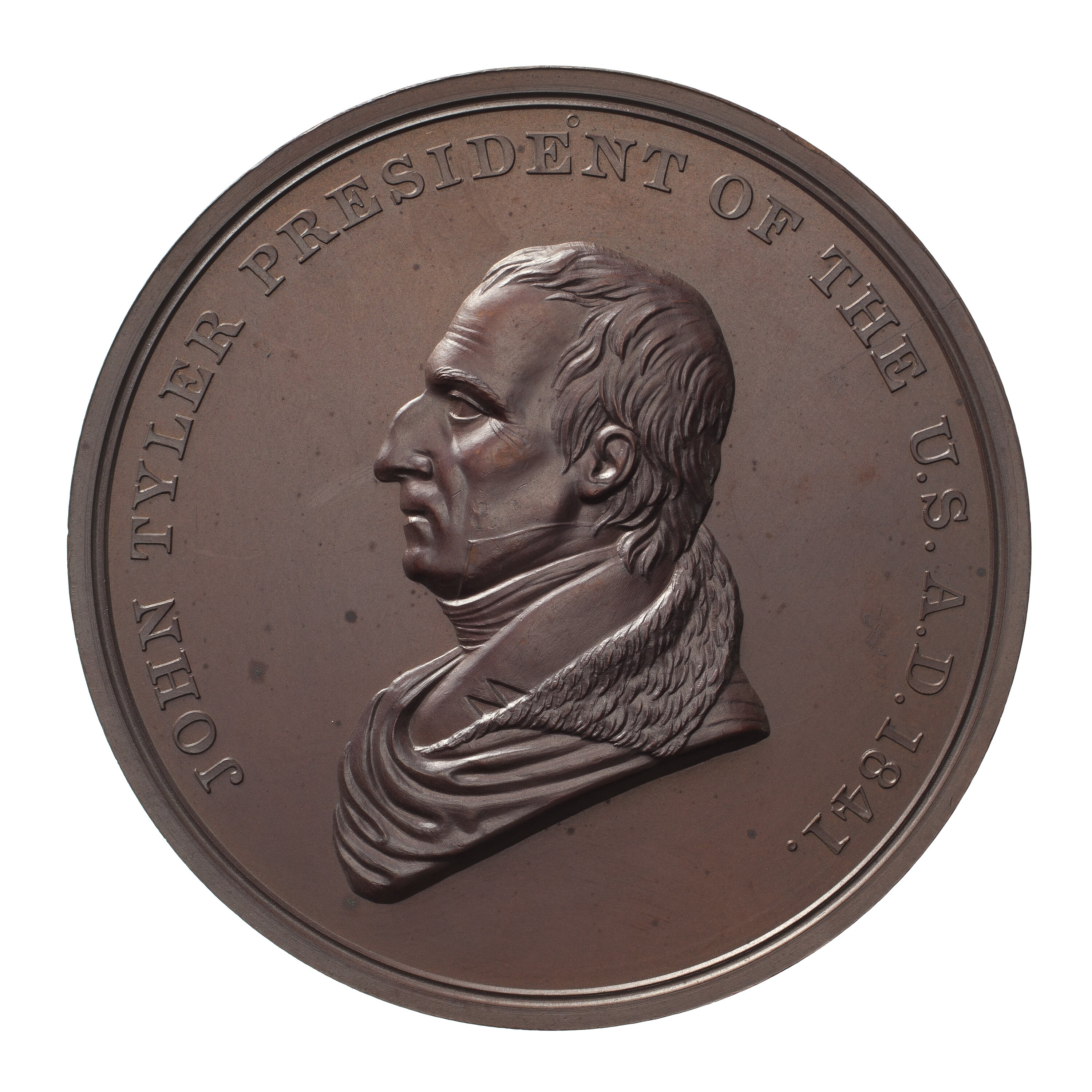 A draped bust of the President facing right; around, JOHN TYLER PRESIDENT OF THE U. S. A.D. 1841