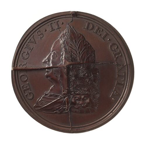 A draped and laureate bust of the King facing left; around, GEORGIVS II DEI GRATIA.