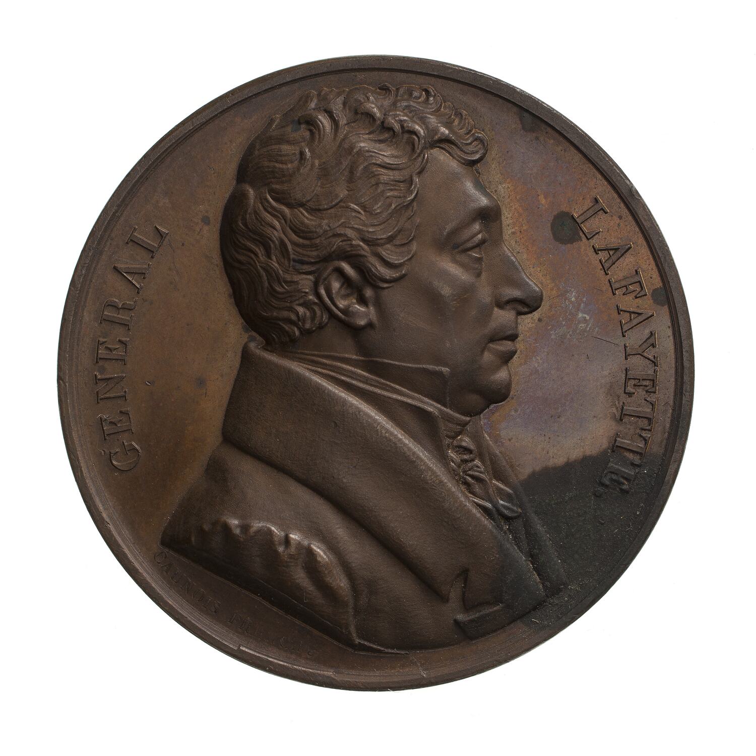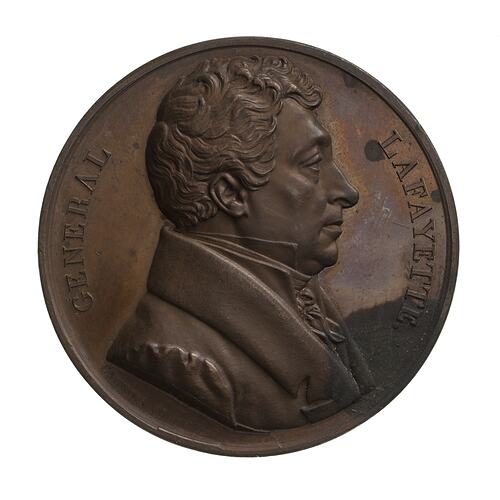 A draped bust facing right; around, GENERAL LAFAYETTE.