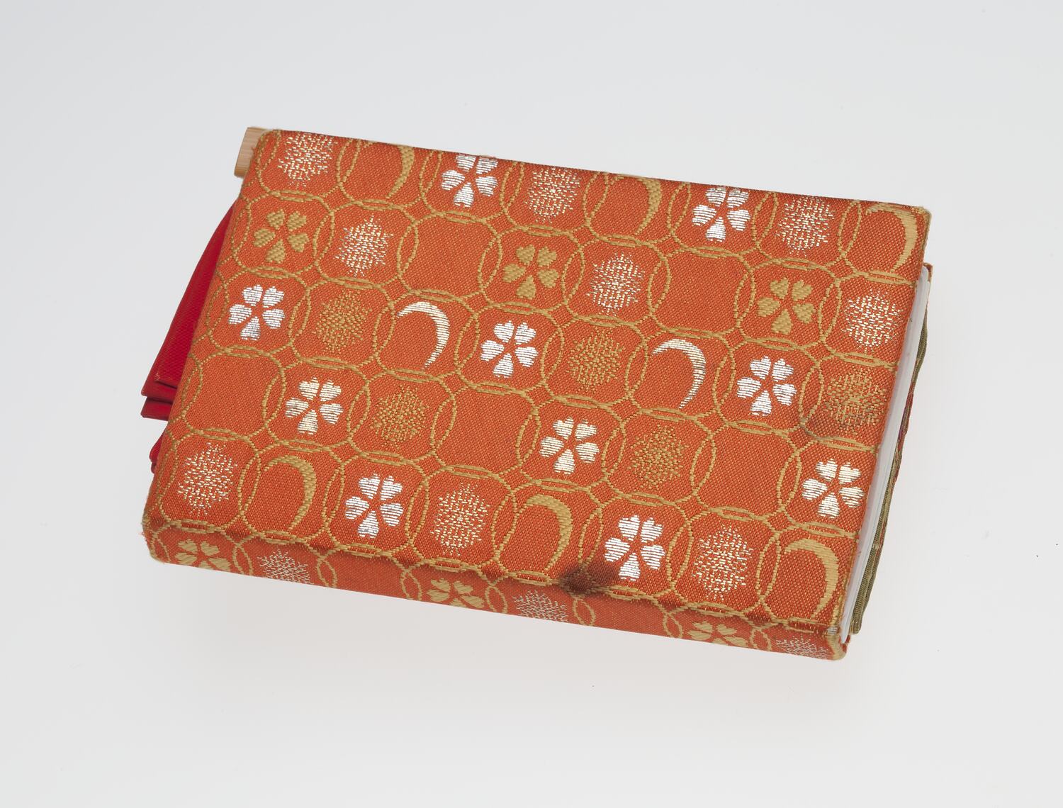 Japanese cloth carrying case ('fukusa basami' in Japanese). It is used as part of the traditional Japanese tea-ceremony. It was brought to Australia by Masumi Hiraga Jackson when she immigrated from Japan in 1985.