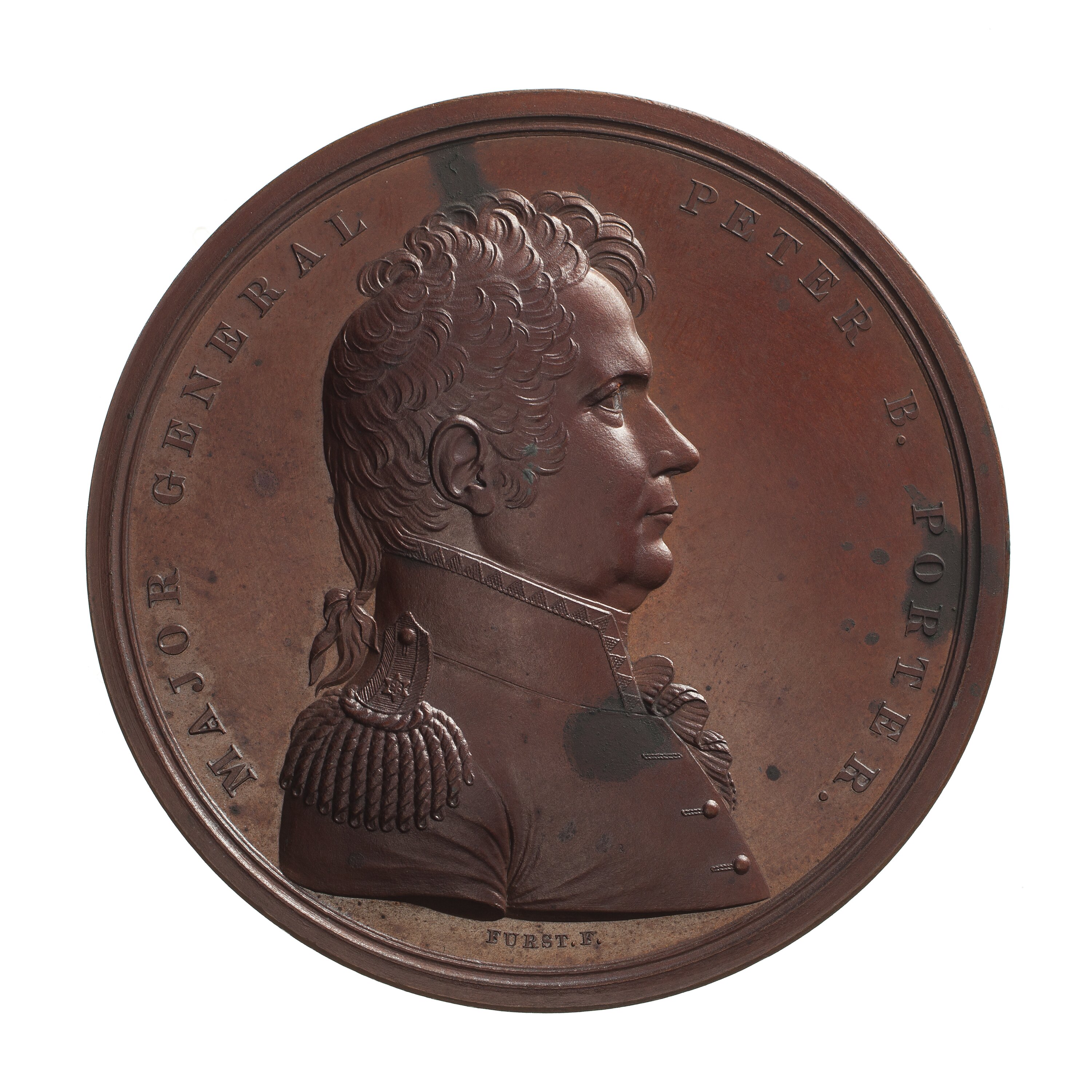 Bronze strike of the Congressional Medal awarded to Major General Peter B. Porter, by the United States of America, 1814. The medal was awarded for Porter's gallantry and good conduct during the Battle of Chippewa, the Battle of Niagara, and the Battle of Erie.