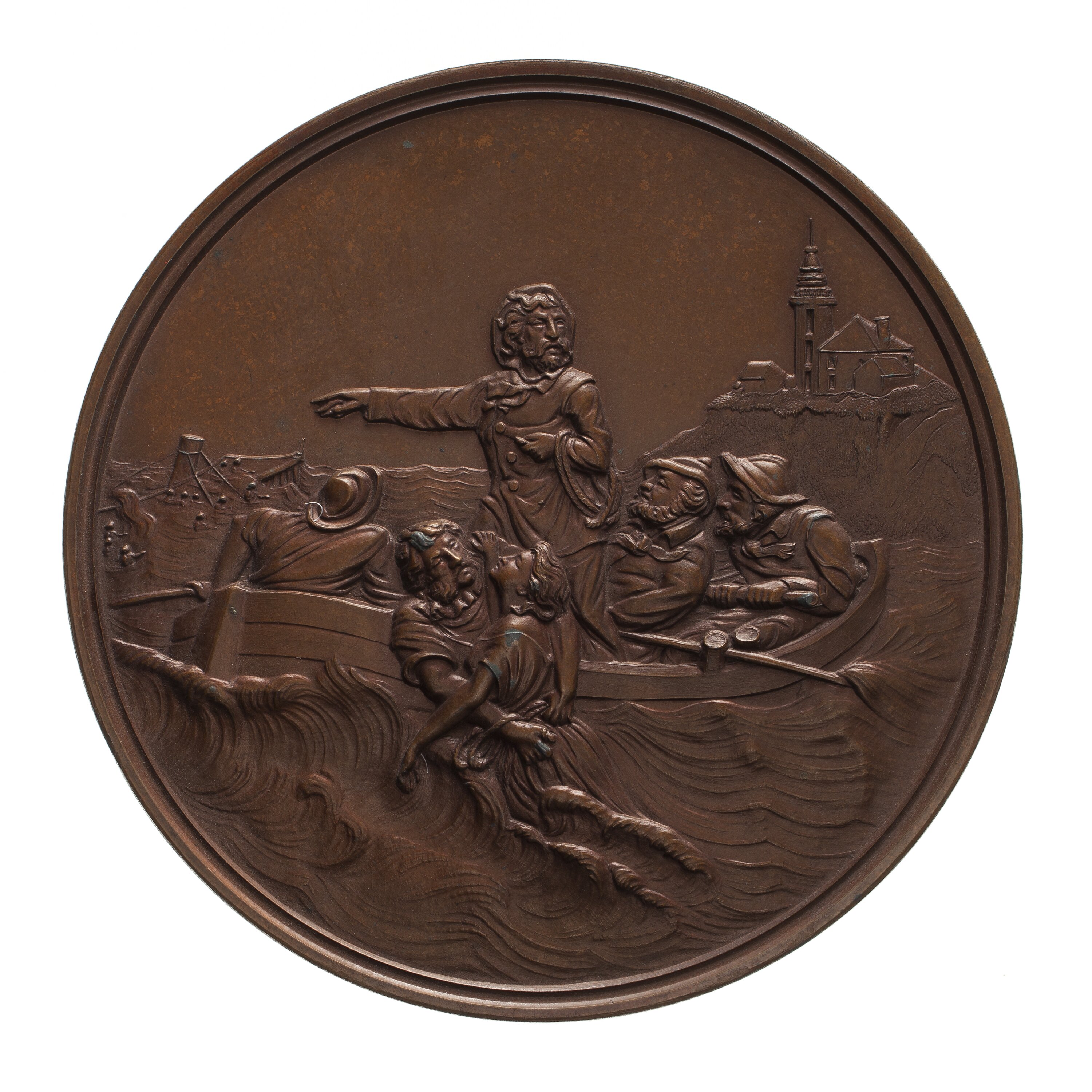 Copper strike of the Congressional Medal awarded to Captain Jared S. Crandall and Others, by the United States of America, 1873. The medal was awarded to the ten men who saved 32 people from the wreck of the steamer Metis in 1872.