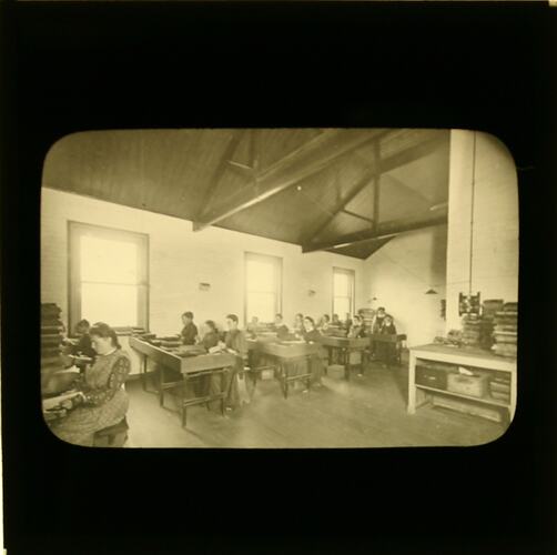 One of a set of lantern slides from the Royal Victorian Institute for the Blind (RVIB, later Vision Australia), located at 557 St Kilda Road, Melbourne.