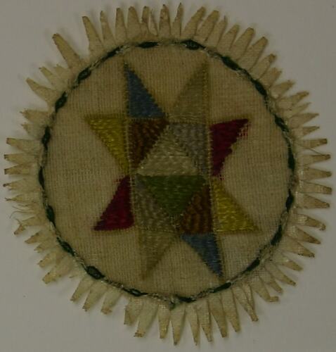 Embroidered watch paper bearing a star design, produced in the 19th Century.