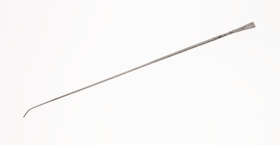 One of a set of five opium dippers (also known as opium needles) which are part of a group of opium related objects obtained in a raid on Chinese premises by investigating officers from the Victorian Customs Department circa 1905-1930. Opium use was widespread in China between the 17th and 19th Centuries with the British East India Company importing large quantities of the drug. Chinese attempts to ban the opium trade and resistance against the foreign intervention it represented culminated in the Opium Wars of the early to mid-19th Century when force of arms ensured that Chinese ports remained open to opium.