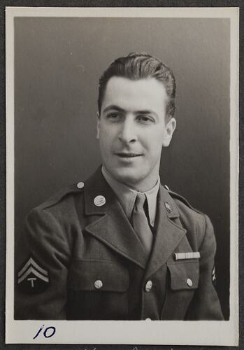 This is one of many portraits in an album of military and naval personnel who visited the Kodak Australasia Pty Ltd factory during World War II, 1939-1945.