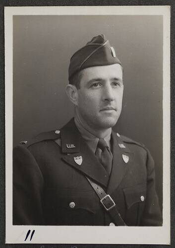 This is one of many portraits in an album of military and naval personnel who visited the Kodak Australasia Pty Ltd factory during World War II, 1939-1945.