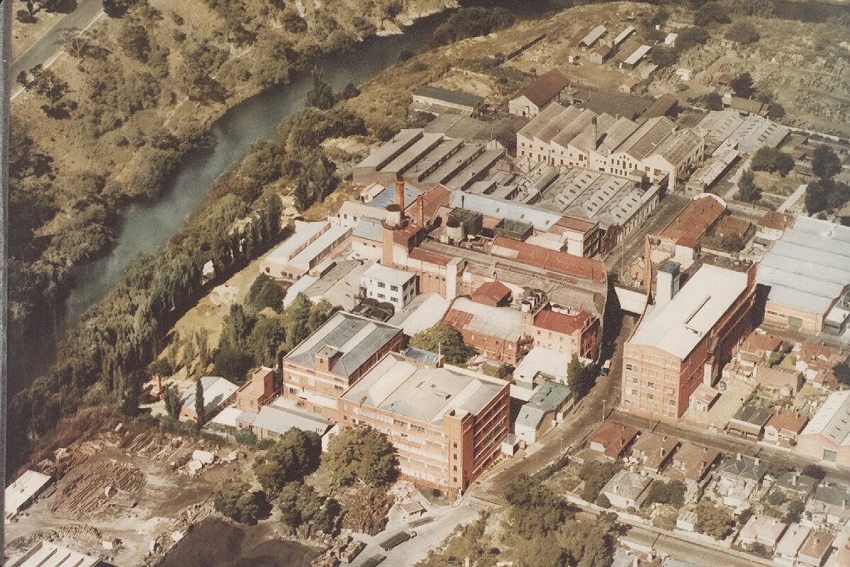 Colour aerial photograph of the Kodak Australasia Pty Ltd factory at Abbotsford, circa 1946.
