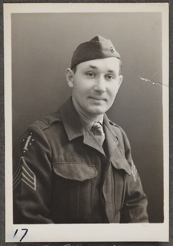 This is one of many portraits in an album of military and naval personnel who visited the Kodak Australasia Pty Ltd factory during World War II, 1939-1945.