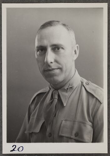 This is one of many portraits in an album of military and naval personnel who visited the Kodak Australasia Pty Ltd factory during World War II, 1939-1945.
