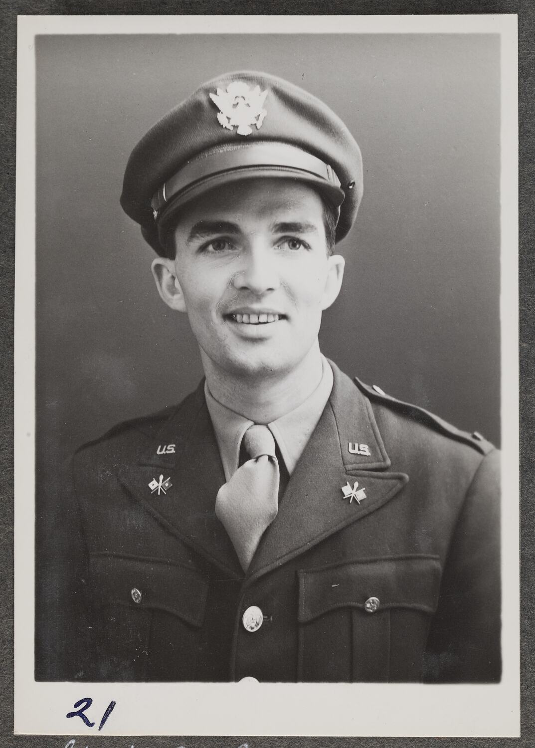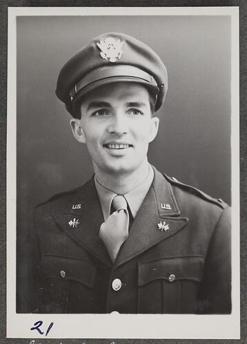 This is one of many portraits in an album of military and naval personnel who visited the Kodak Australasia Pty Ltd factory during World War II, 1939-1945.