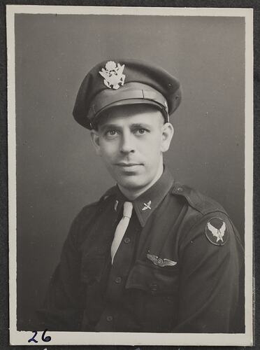 This is one of many portraits in an album of military and naval personnel who visited the Kodak Australasia Pty Ltd factory during World War II, 1939-1945.