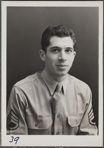 Photographic portrait of Staff Sergeant de Filippes on a visit to the Kodak factory at Abbotsford.