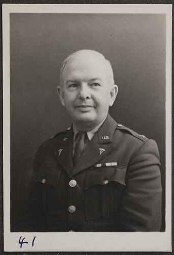 This is one of many portraits in an album of military and naval personnel who visited the Kodak Australasia Pty Ltd factory during World War II, 1939-1945.