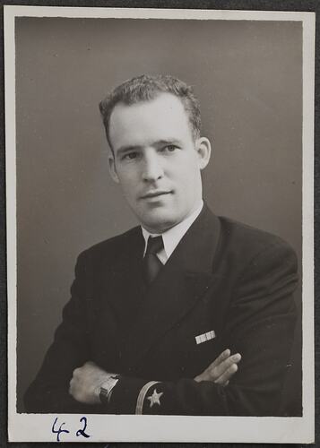 This is one of many portraits in an album of military and naval personnel who visited the Kodak Australasia Pty Ltd factory during World War II, 1939-1945.