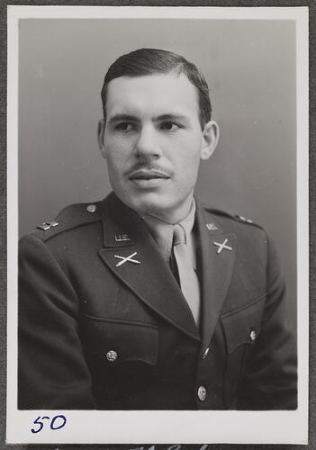 This is one of many portraits in an album of military and naval personnel who visited the Kodak Australasia Pty Ltd factory during World War II, 1939-1945.