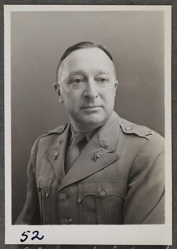 This is one of many portraits in an album of military and naval personnel who visited the Kodak Australasia Pty Ltd factory during World War II, 1939-1945.