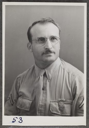 This is one of many portraits in an album of military and naval personnel who visited the Kodak Australasia Pty Ltd factory during World War II, 1939-1945.
