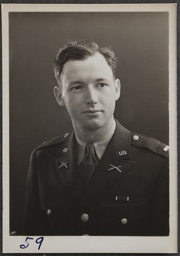This is one of many portraits in an album of military and naval personnel who visited the Kodak Australasia Pty Ltd factory during World War II, 1939-1945.