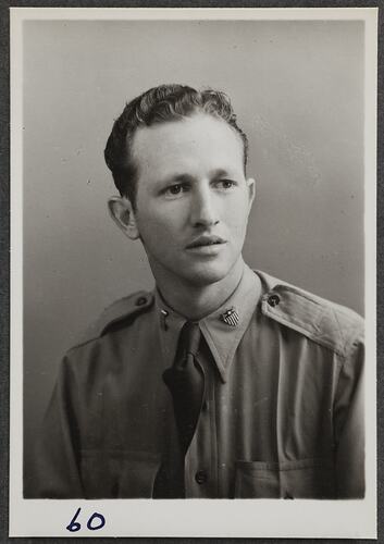 This is one of many portraits in an album of military and naval personnel who visited the Kodak Australasia Pty Ltd factory during World War II, 1939-1945.