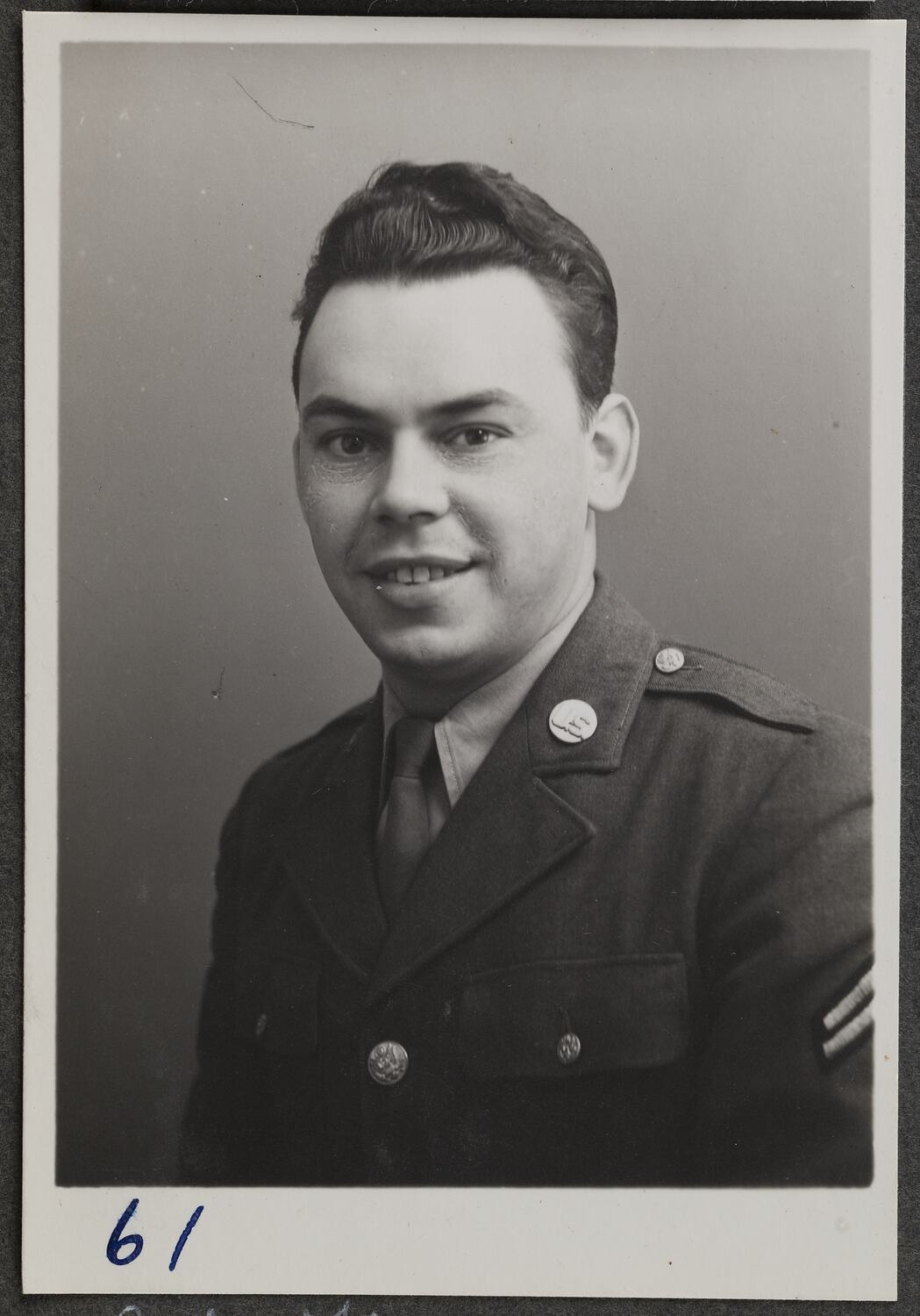 Photographic portrait of Corporal Friedman on a visit to the Kodak factory at Abbotsford.