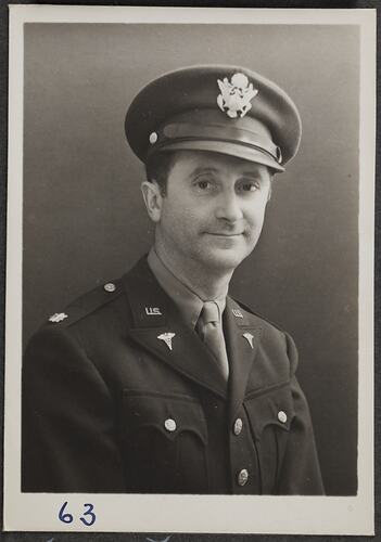 This is one of many portraits in an album of military and naval personnel who visited the Kodak Australasia Pty Ltd factory during World War II, 1939-1945.