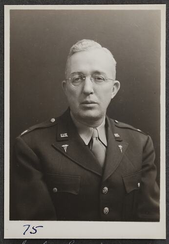 This is one of many portraits in an album of military and naval personnel who visited the Kodak Australasia Pty Ltd factory during World War II, 1939-1945.