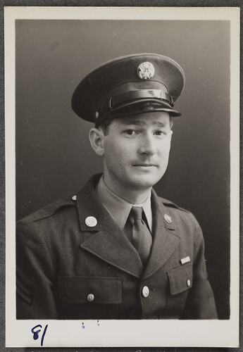 This is one of many portraits in an album of military and naval personnel who visited the Kodak Australasia Pty Ltd factory during World War II, 1939-1945.