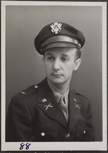 This is one of many portraits in an album of military and naval personnel who visited the Kodak Australasia Pty Ltd factory during World War II, 1939-1945.