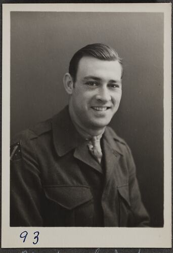 This is one of many portraits in an album of military and naval personnel who visited the Kodak Australasia Pty Ltd factory during World War II, 1939-1945.