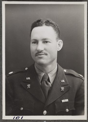 This is one of many portraits in an album of military and naval personnel who visited the Kodak Australasia Pty Ltd factory during World War II, 1939-1945.