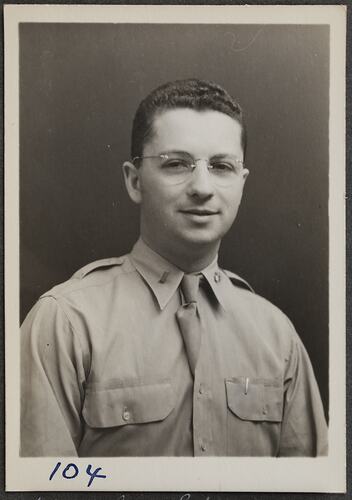 This is one of many portraits in an album of military and naval personnel who visited the Kodak Australasia Pty Ltd factory during World War II, 1939-1945.