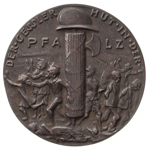 The Gessler Hat in the Palatinate medal, Germany, 1920 by Karl Goetz.