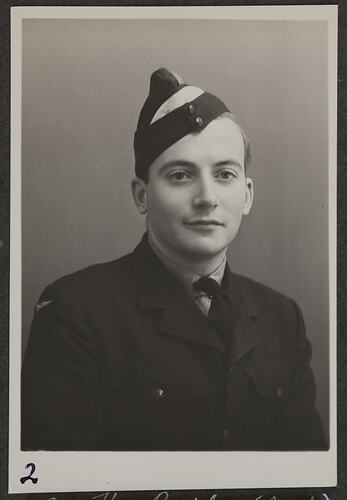 This is one of many portraits in an album of military and naval personnel who visited the Kodak Australasia Pty Ltd factory during World War II, 1939-1945.