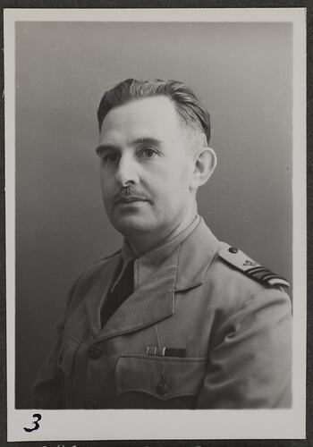 This is one of many portraits in an album of military and naval personnel who visited the Kodak Australasia Pty Ltd factory during World War II, 1939-1945.