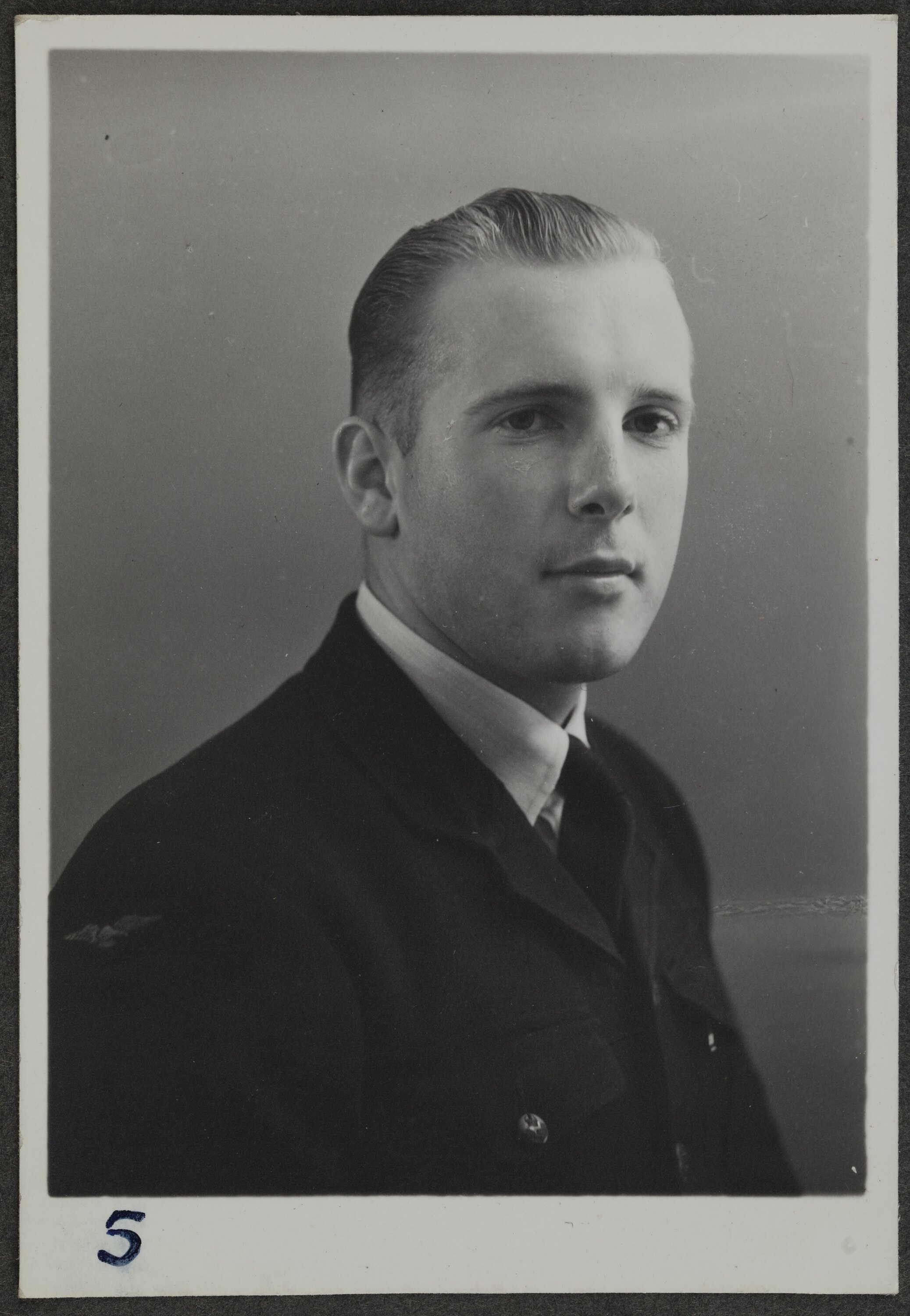 This is one of many portraits in an album of military and naval personnel who visited the Kodak Australasia Pty Ltd factory during World War II, 1939-1945.