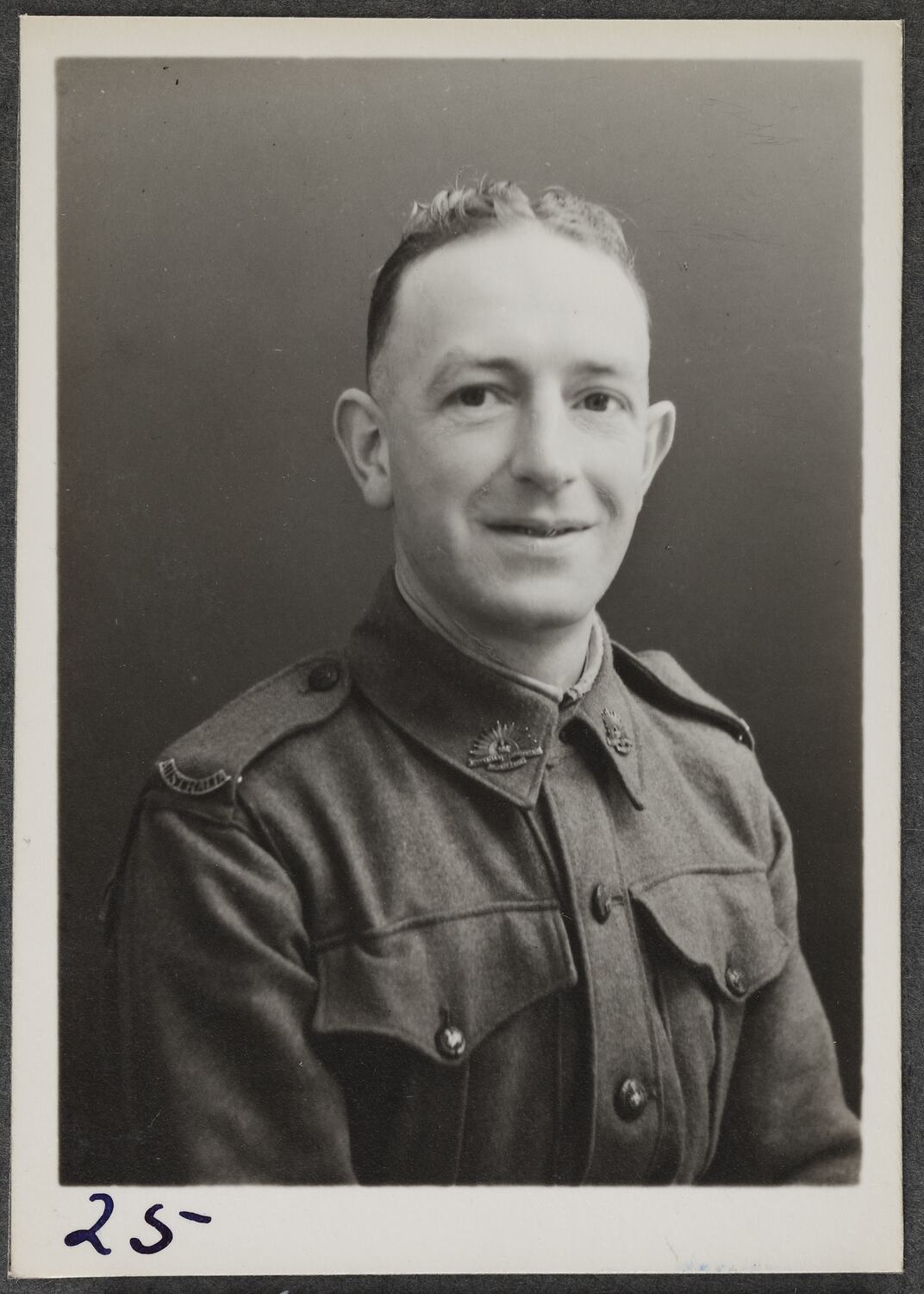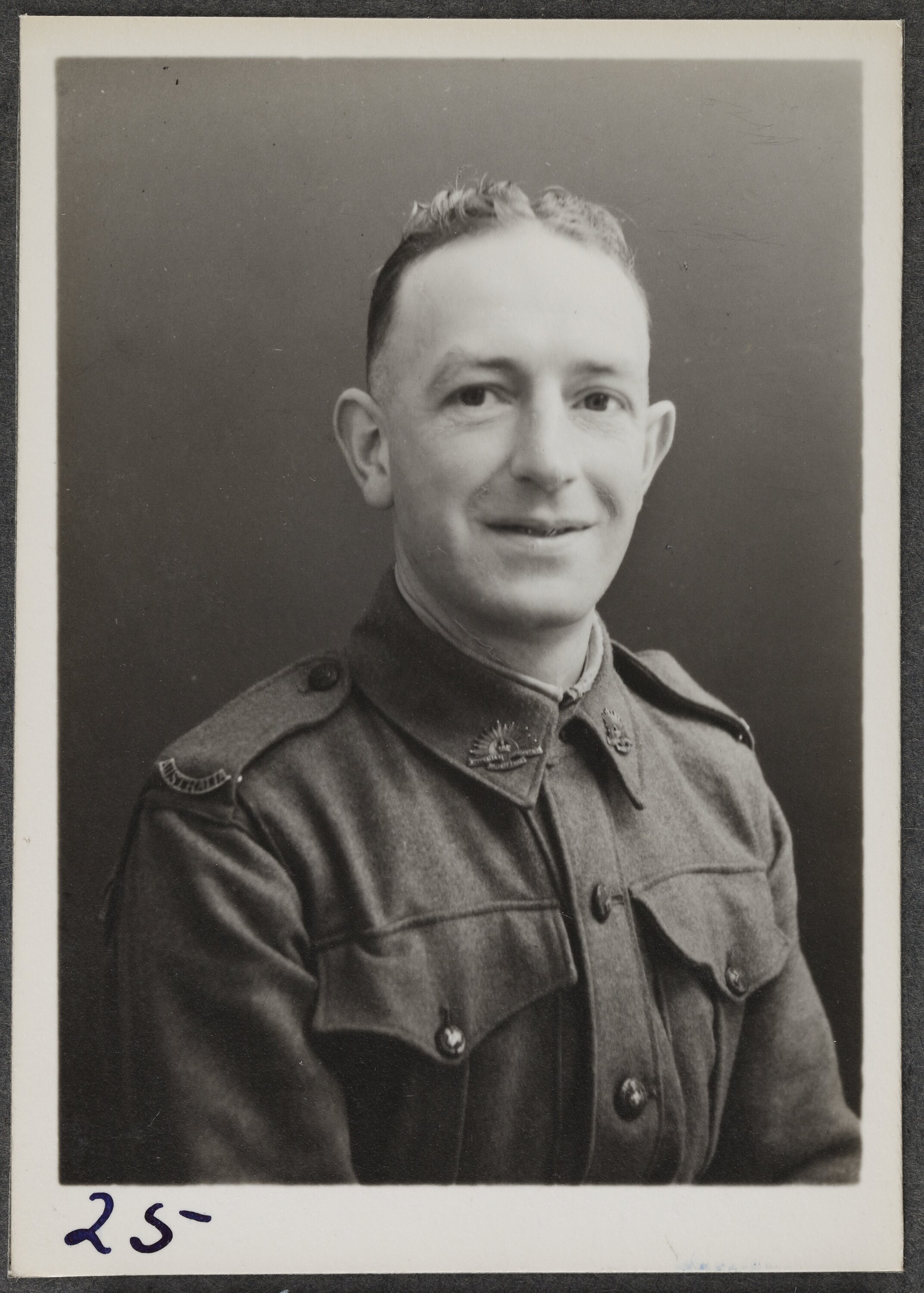 This is one of many portraits in an album of military and naval personnel who visited the Kodak Australasia Pty Ltd factory during World War II, 1939-1945.