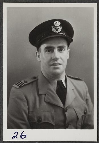 This is one of many portraits in an album of military and naval personnel who visited the Kodak Australasia Pty Ltd factory during World War II, 1939-1945.