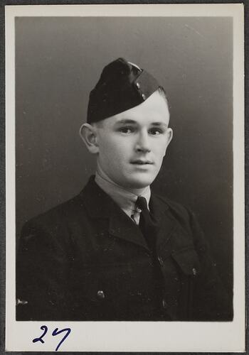 This is one of many portraits in an album of military and naval personnel who visited the Kodak Australasia Pty Ltd factory during World War II, 1939-1945.