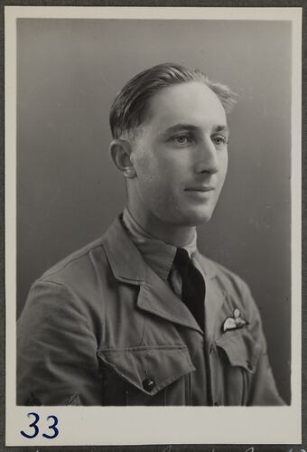 This is one of many portraits in an album of military and naval personnel who visited the Kodak Australasia Pty Ltd factory during World War II, 1939-1945.