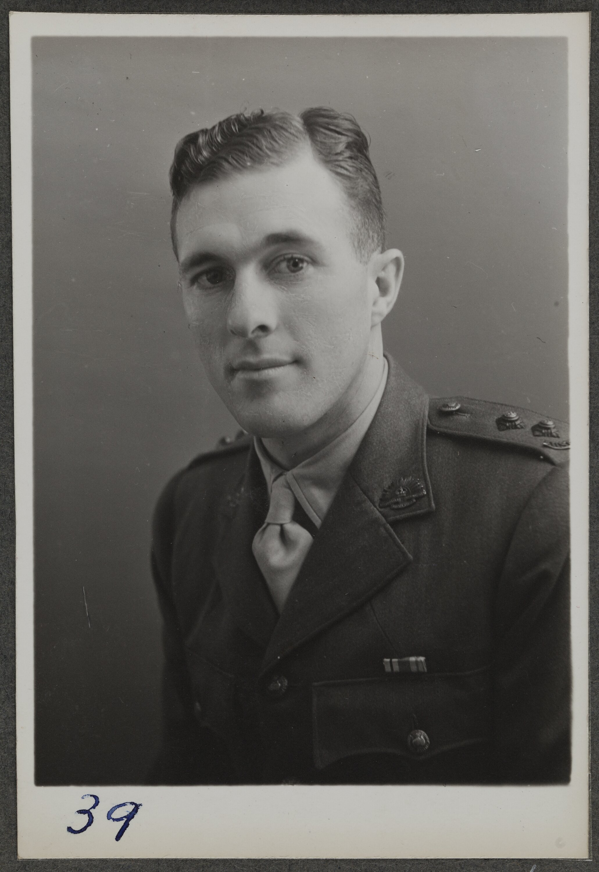 This is one of many portraits in an album of military and naval personnel who visited the Kodak Australasia Pty Ltd factory during World War II, 1939-1945.