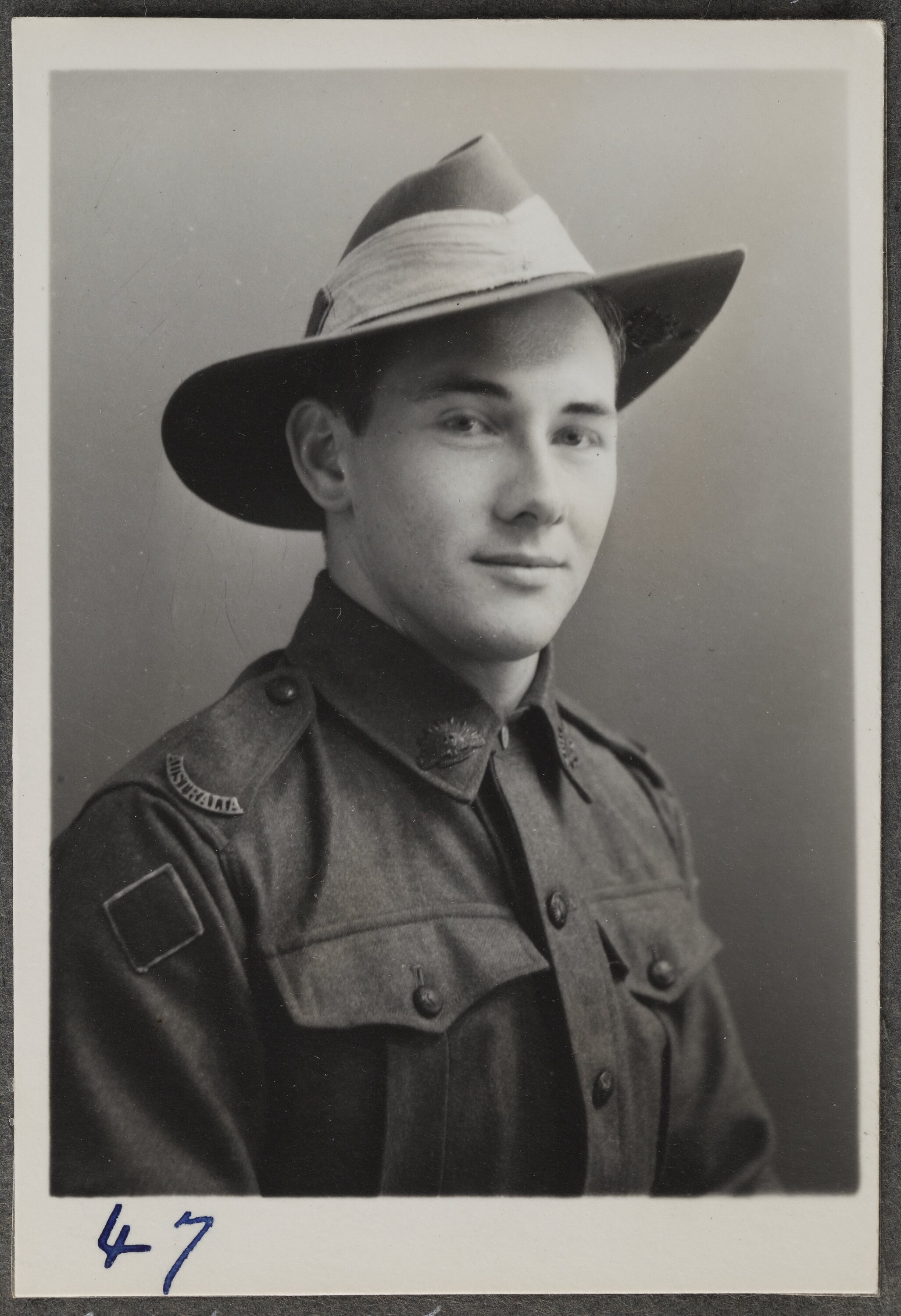 This is one of many portraits in an album of military and naval personnel who visited the Kodak Australasia Pty Ltd factory during World War II, 1939-1945.