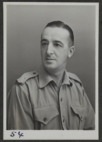 This is one of many portraits in an album of military and naval personnel who visited the Kodak Australasia Pty Ltd factory during World War II, 1939-1945.