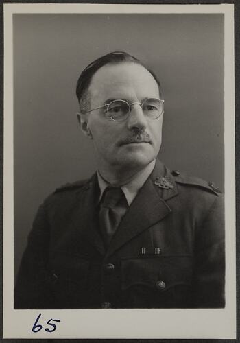 This is one of many portraits in an album of military and naval personnel who visited the Kodak Australasia Pty Ltd factory during World War II, 1939-1945.