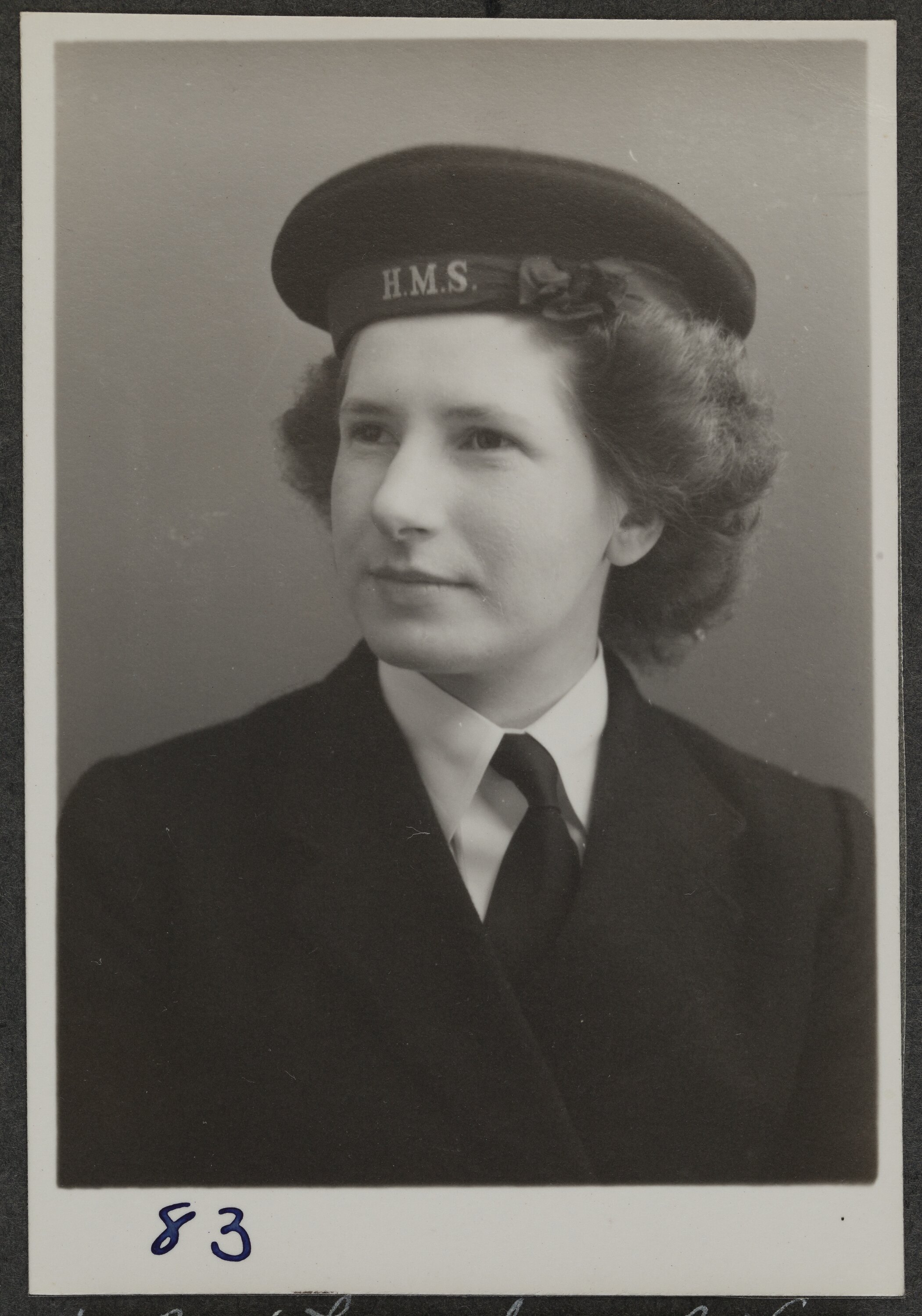 Photographic portrait of Wren Lazenby, Women's Royal Naval Service (WRNS), UK, on a visit to the Kodak factory at Abbotsford.