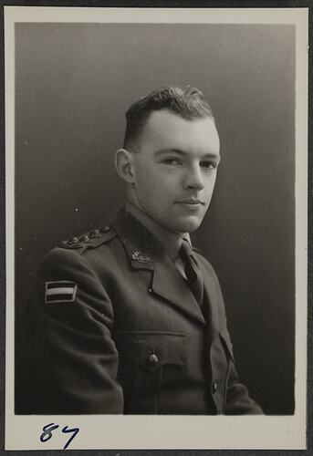 This is one of many portraits in an album of military and naval personnel who visited the Kodak Australasia Pty Ltd factory during World War II, 1939-1945.